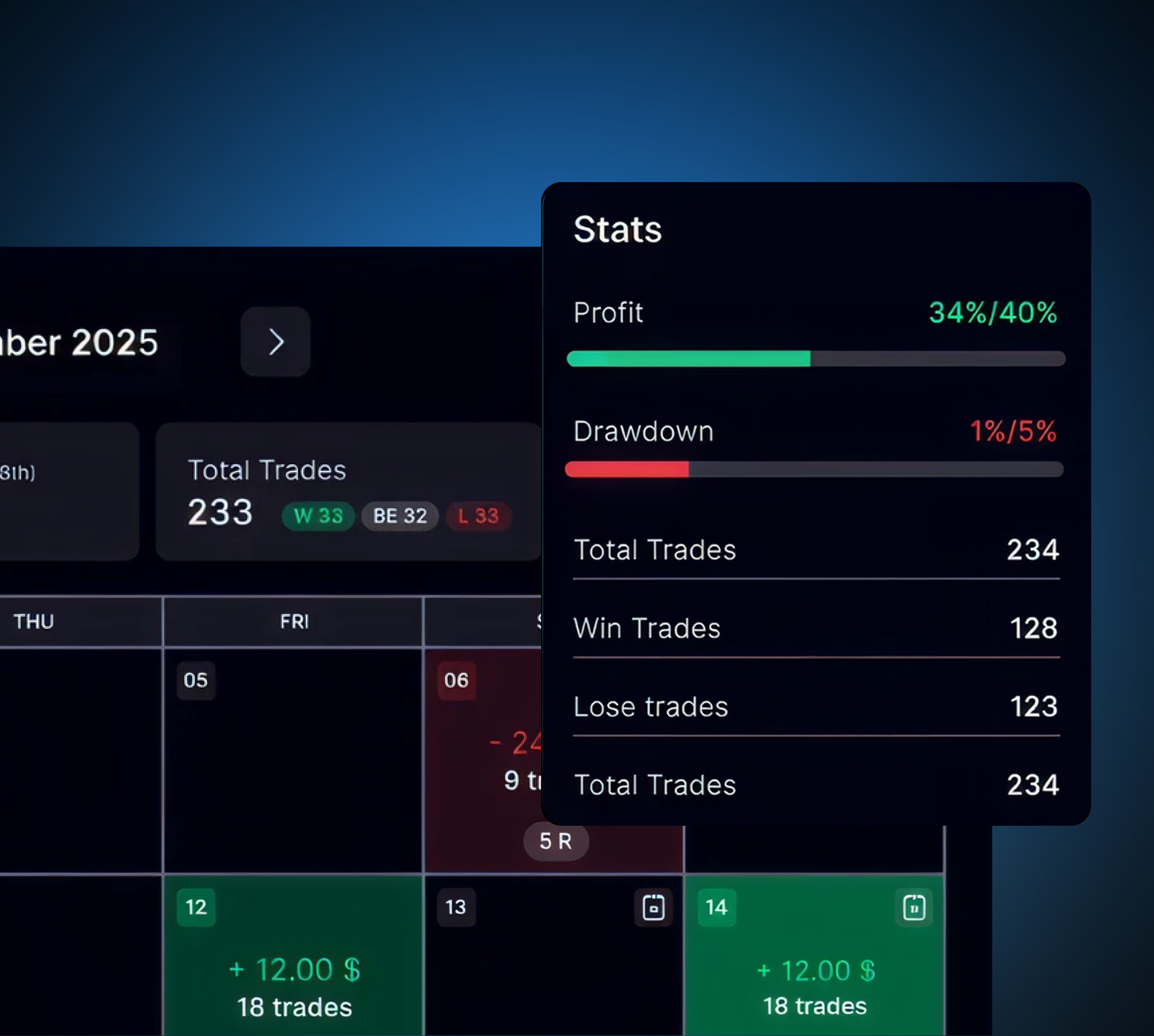 Get a clear picture of your trading journey with detailed analytics, performance metrics, and equity tracking built to reveal your true edge.